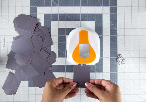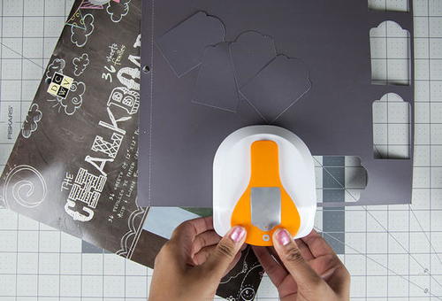 Using the Standard Tag maker, punch tag shapes from chalkboard paper. You will need about 35 to 40 tags.