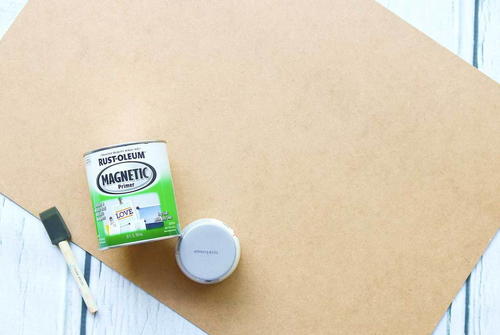 To begin, take an old framed print. Remove the print from the frame and add a few coats (the more coats applied, the stronger the magnetic pull) directly on the frame backer. You can cover the magnetic primer with a latex paint or keep it black.