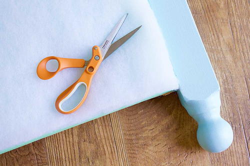 Cut the batting to the same size as the foam and adhere the batting to the top side of the foam. The batting will provide an extra layer of comfort and ensure that your upcycled headboard feels as good as it looks.