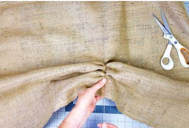 Next, determine the required length of the rectangle of fabric that will be the sides of your planter cover. Measure the diameter of the circle cut in step 1. The length of the rectangle will be the diameter of the circle multiplied by 3.14. The width of the rectangle will be determined by measuring the height of the flowerpot and adding 6”. To accurately cut burlap, mark the measurement points and pull out an entire thread from the burlap. Once you have removed one thread of burlap from the weave, you'll have a straight and accurate cutting line. Cut the burlap using the 8” Mixed Media Shears.