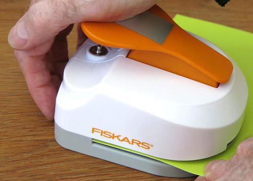Insert the tag into the small slot in the front of the label maker and press on the lever again, to punch a hole. (Note that if you are going to laminate your labels, you should wait until after they are laminated to punch holes.)