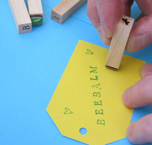 You could also write the names of plants on each label by hand, of course, or use a set of rubber alphabet stamps to spell plant names. Choose a contrasting ink color and let the ink dry well before laminating.