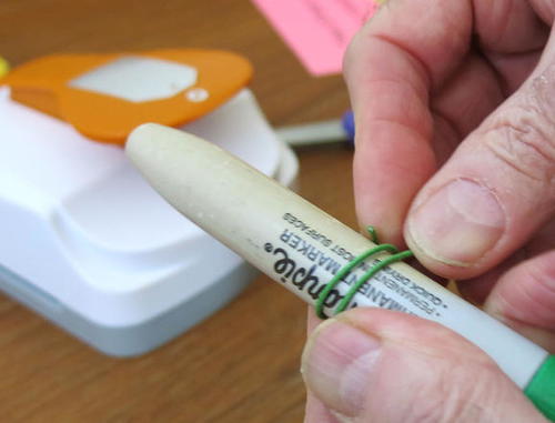 To hang your tag, wrap a piece of floral armature wire two or three times around a marking pen to make a coil.