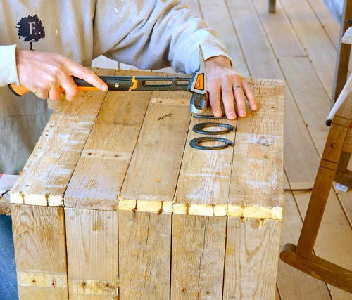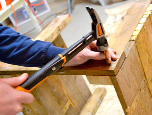 Locate a pallet and begin to carefully dismantle it. The IsoCore™ 22 oz. Framing Hammer will help you tackle this task quickly and without destroying the pallet. The rip claw pulls apart the pallet and the extended grip provides you with leverage to make sure you keep the pallet wood all in one piece and able to be used for the project you are about to create.