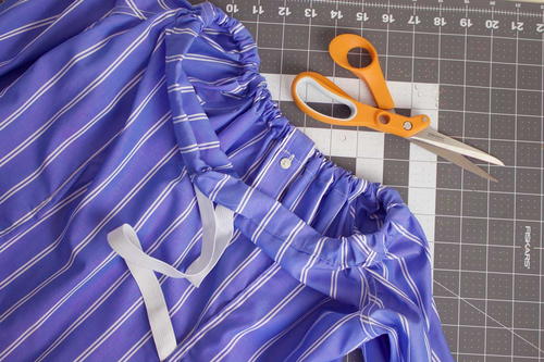 Stitch the opening in the shirt for the elastic closed and you're finished.